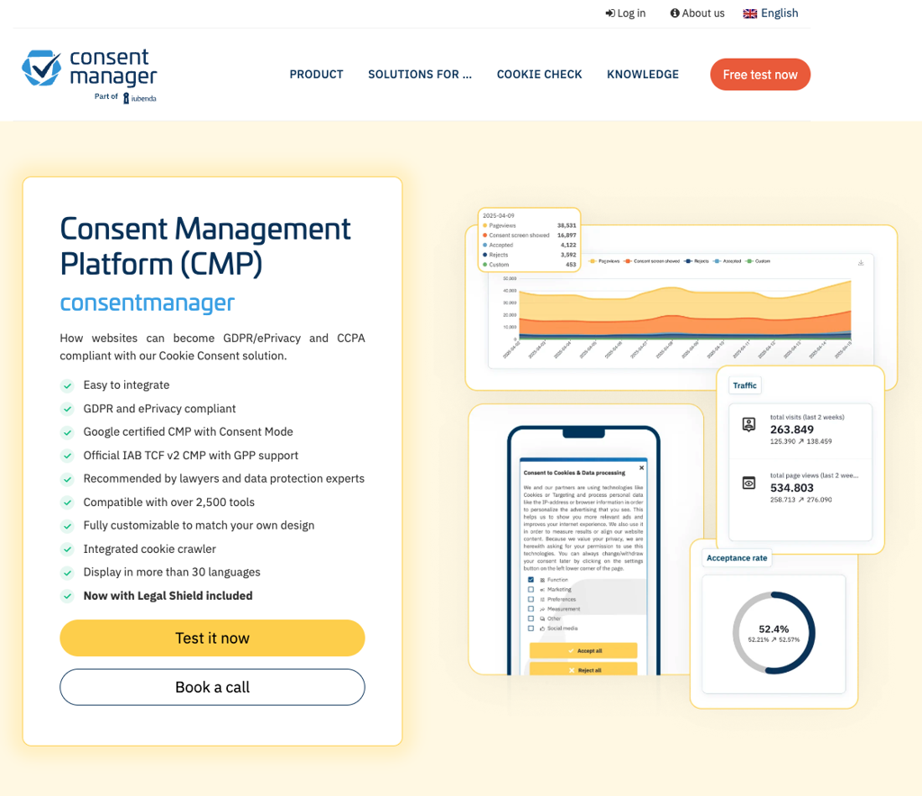 consentmanager ist ein spezialisiertes CMP (Consent Management Platform), das vor allem für Unternehmen mit hohen Anforderungen an DSGVO- und ePrivacy-Konformität interessant ist. Das Tool bietet dir die Möglichkeit, deine Website regelmäßig automatisch auf neue Cookies zu scannen und diese in übersichtlichen Kategorien darzustellen. Besucher können so sehr granular entscheiden, welche Cookies sie akzeptieren möchten.